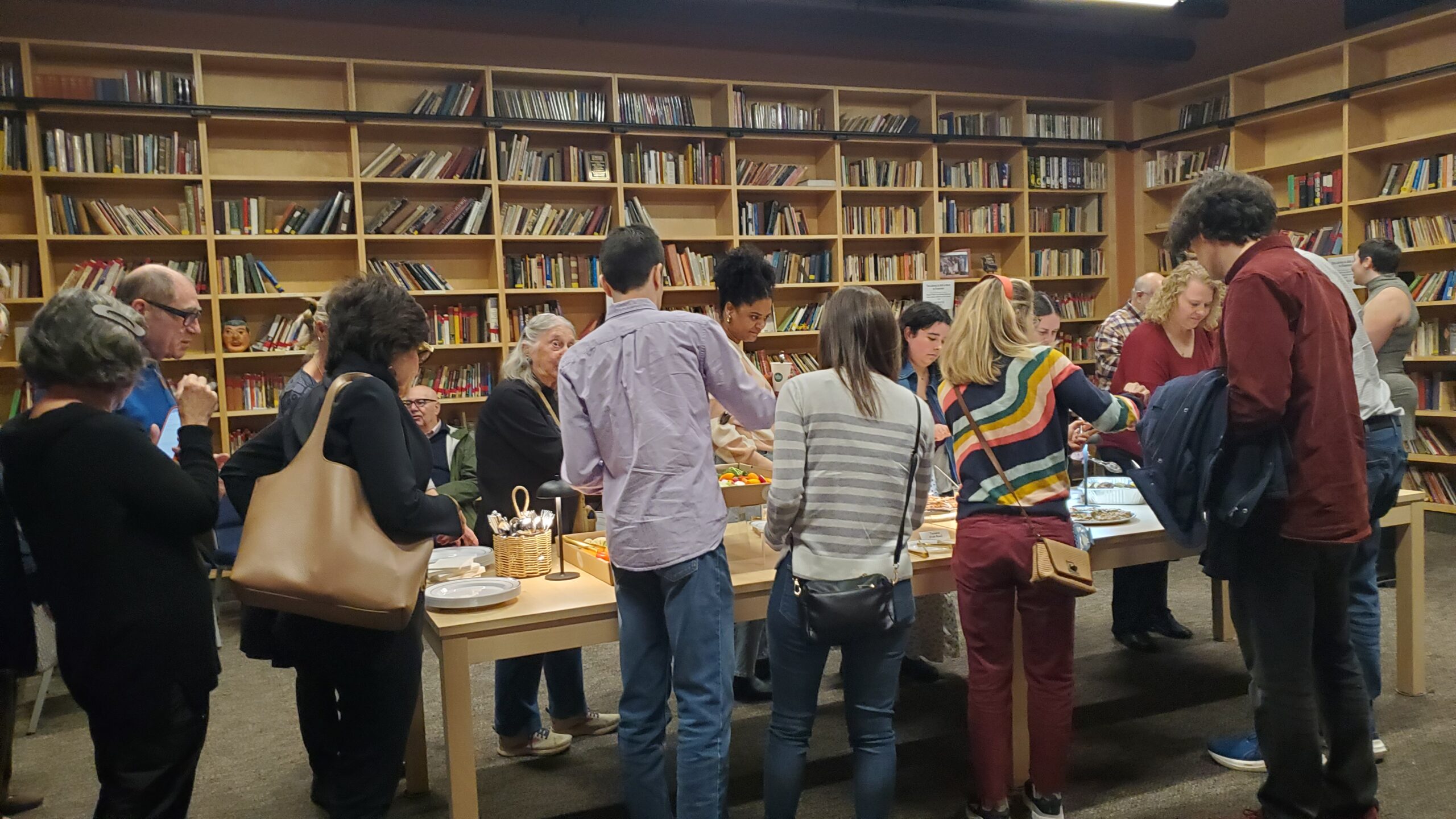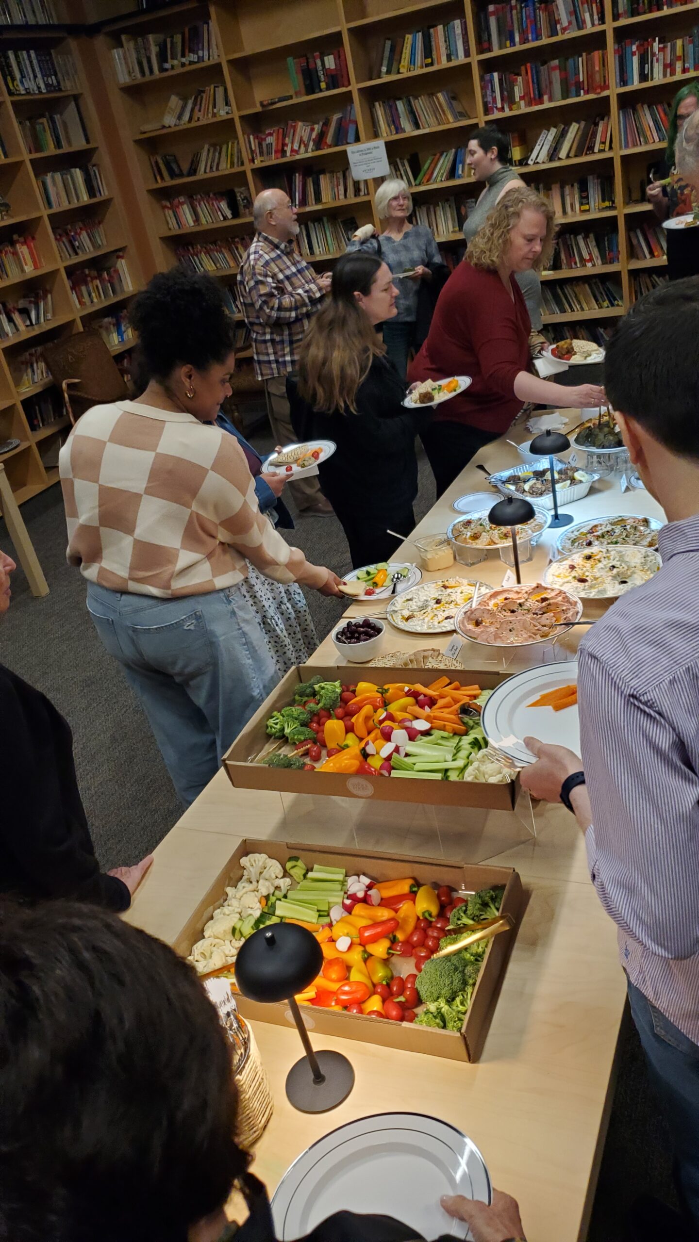 The lunch was great! Wow, what a spread! Everything was delicious. And of course, the best part was the socializing in the library while we all ate.