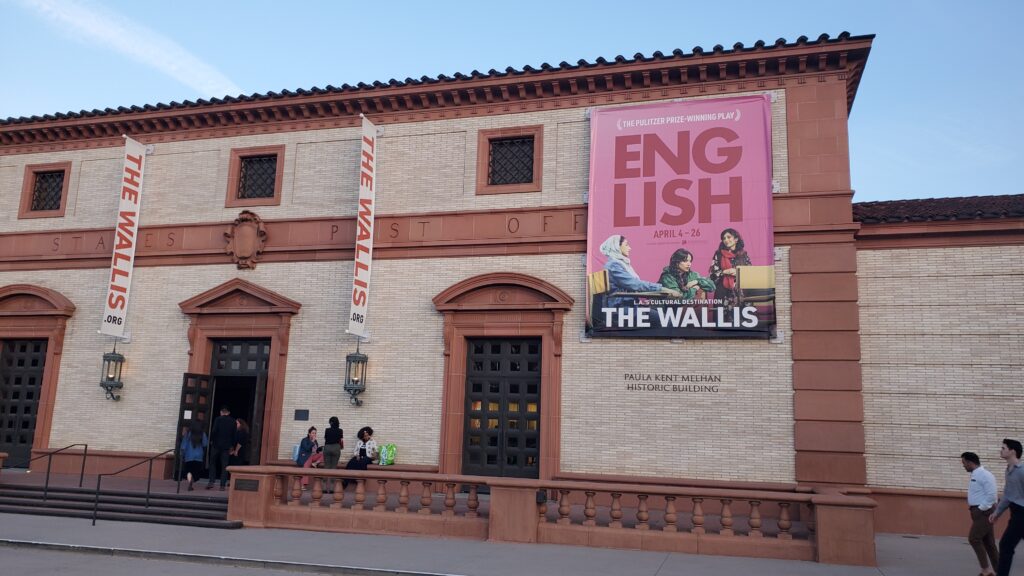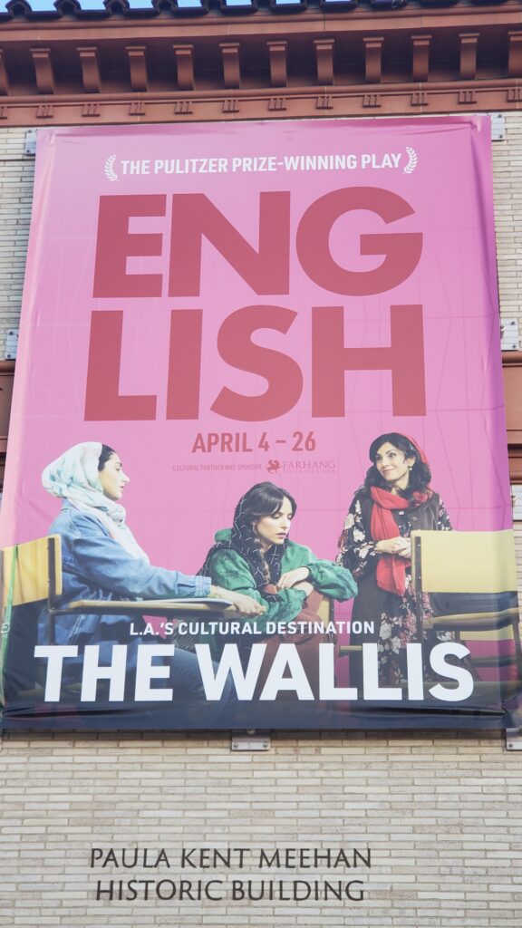 I somehow missed hearing about English until just a week or two before it started here in Los Angeles, at the Wallis Annenberg Center for the Performing Arts. Luckily, I was able to nab a ticket for one of the earliest shows, 4/8/2026, apparently before its “official” opening. It was produced by the Atlantic Theater Company and the Roundabout Theatre Company.