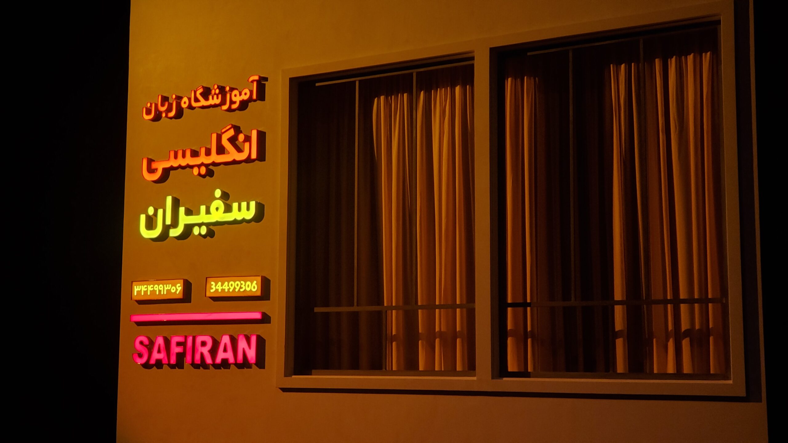 English takes place in an ESL for adults classroom in Karaj, Iran, in 2008, for non-native speakers who want to pass the TOEFL (Test of English as a Foreign Language) and move to an English-speaking country. The five characters in English are Elham, Goli, Roya, Omid, and their teacher, Marjan.