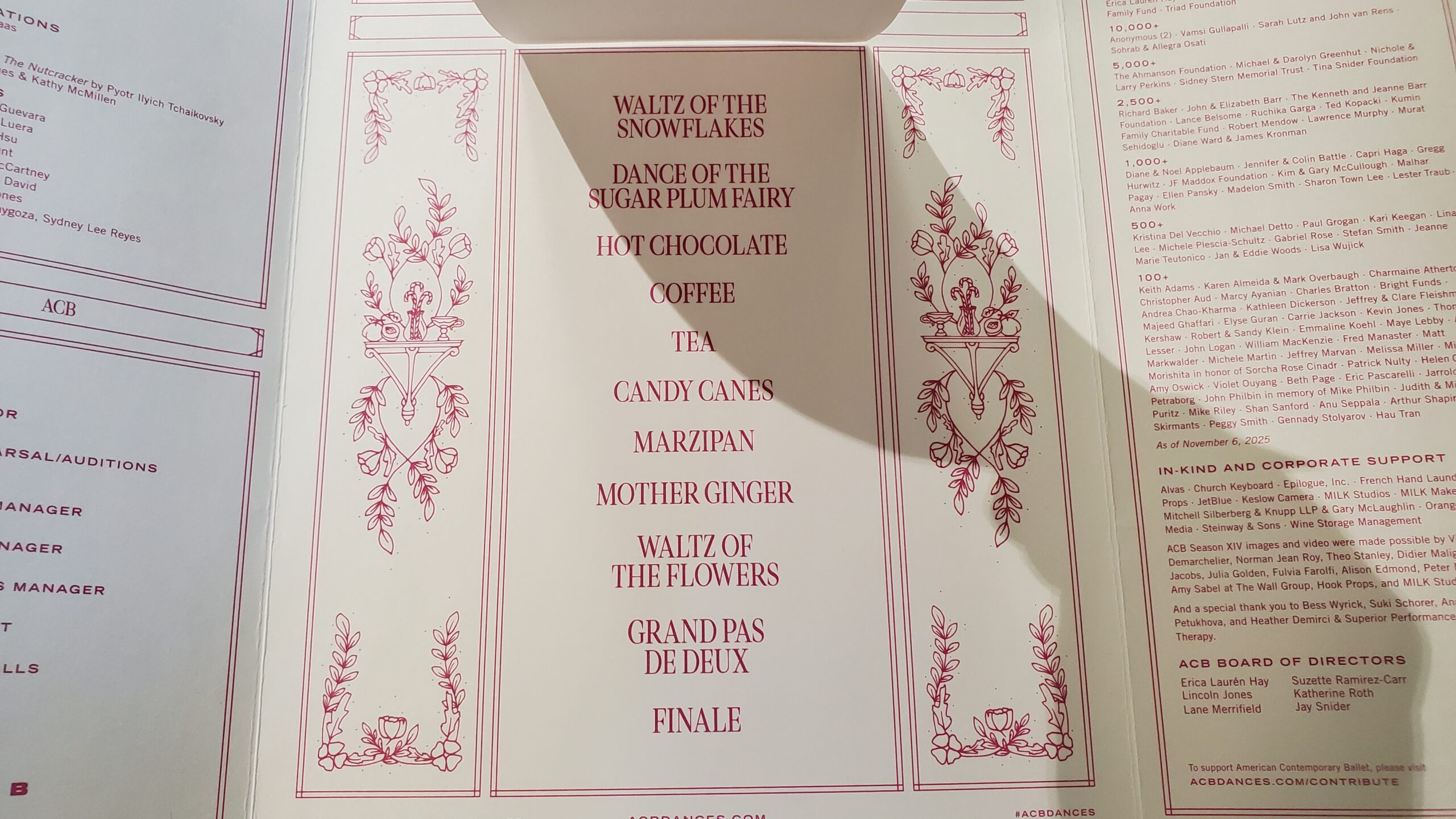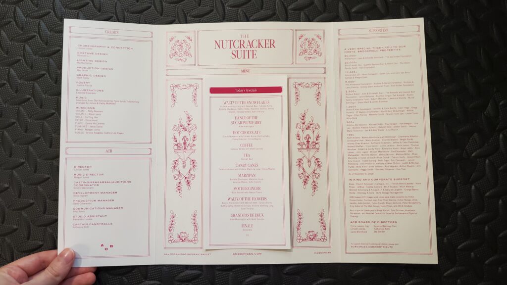 I wasn’t really sure what to expect when I bought a ticket to the American Contemporary Ballet’s 2025 Nutcracker, especially because I was already planning on seeing another Nutcracker (by the LA Ballet company) on Christmas Eve. I was hoping there wouldn’t be too much overlap or redundancy–and boy, did that fear turn out to be completely unfounded. This experience and that ended up being at extreme opposite ends on the spectrum between modern and traditional.