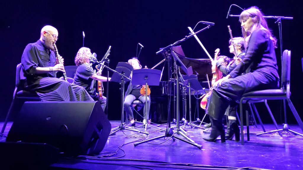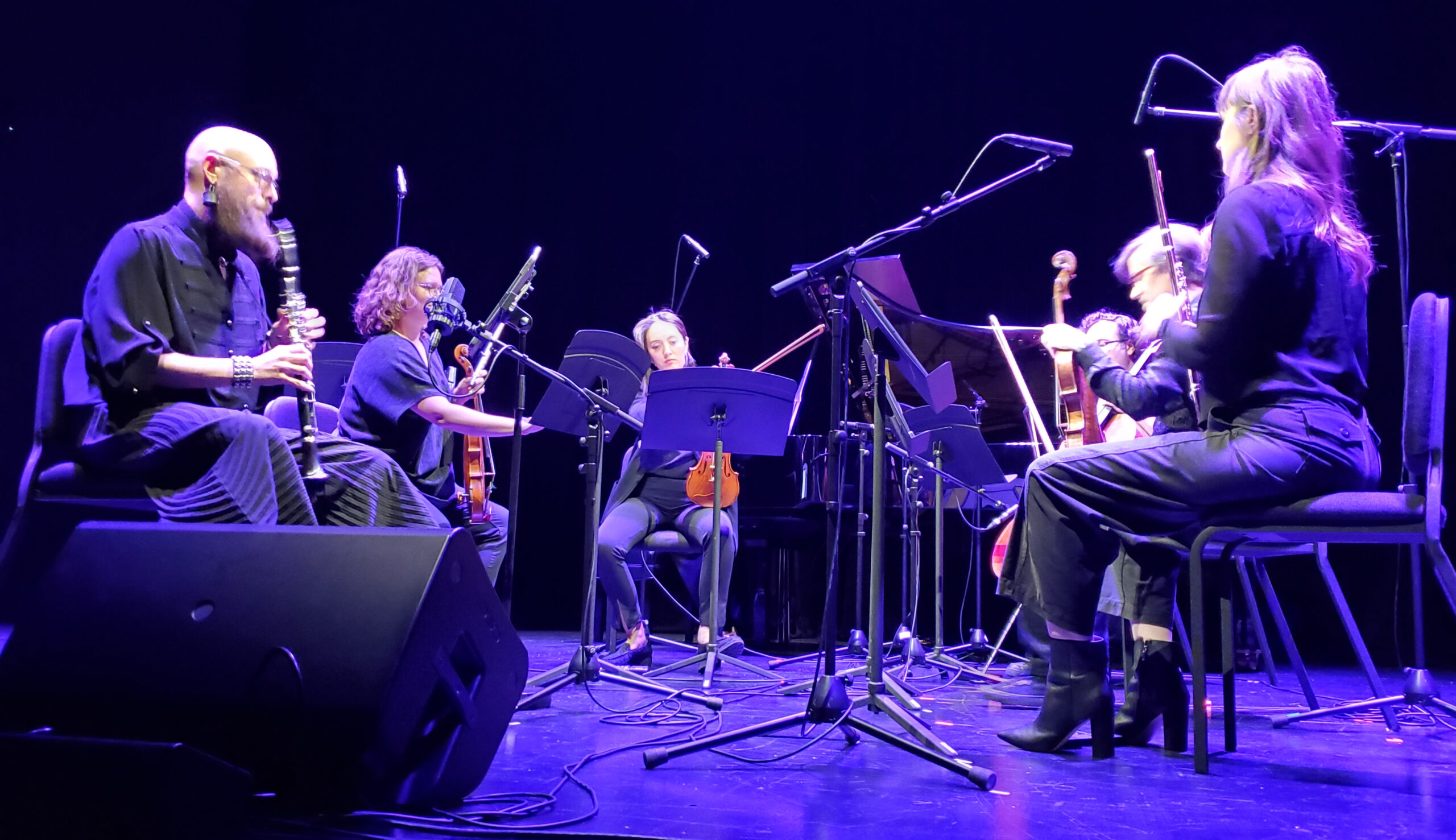 This piece started out more grandiose, with the piano bringing much-needed weight and drama to the evening. But as the piece went on, the piano dropped out completely. Soon, it was reduced to long stretches where only the clarinet would play, alternating only between two long notes, again and again, while the other six members sat silently on stage. It ended quietly and slowly.