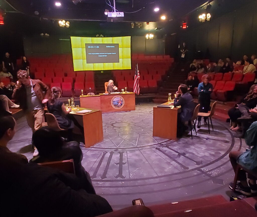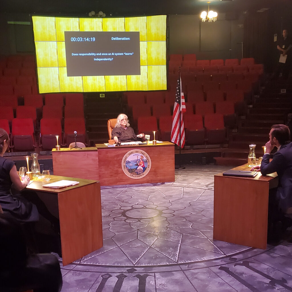 The judge came out, and talked a bit to us as “the jury” before she was joined by the prosecutor, the defense attorney, and the defendant. The defendant was the owner of an AI-powered self-driving car company. One of his company’s self-driving cars had swerved off the road (to avoid an oncoming driver in the wrong lane) and struck down a cyclist in the bike lane, killing him.