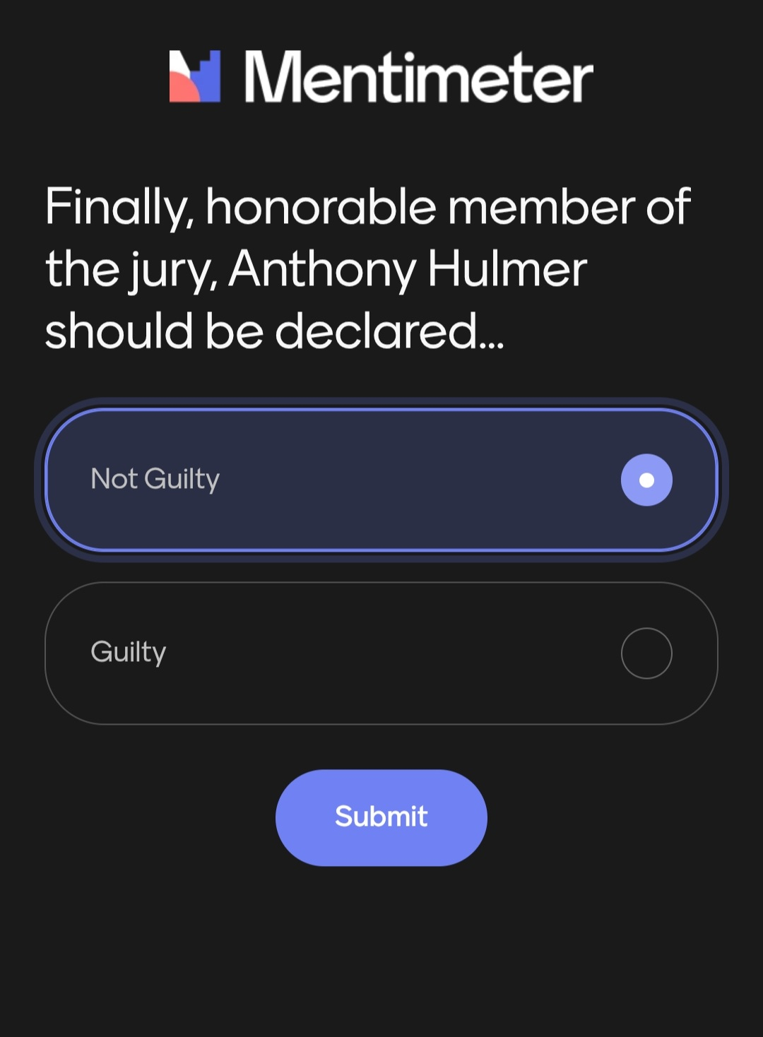 In the end, the night’s audience found Mr. Tech Exec… NOT guilty. However, the percentage of those who thought he was innocent had decreased by about ten points compared to the start.